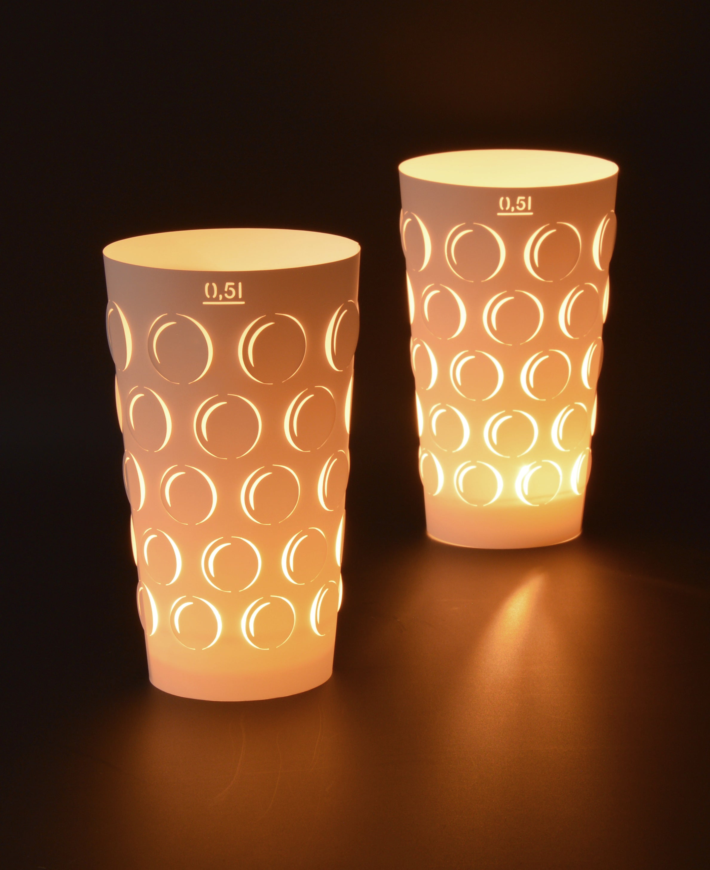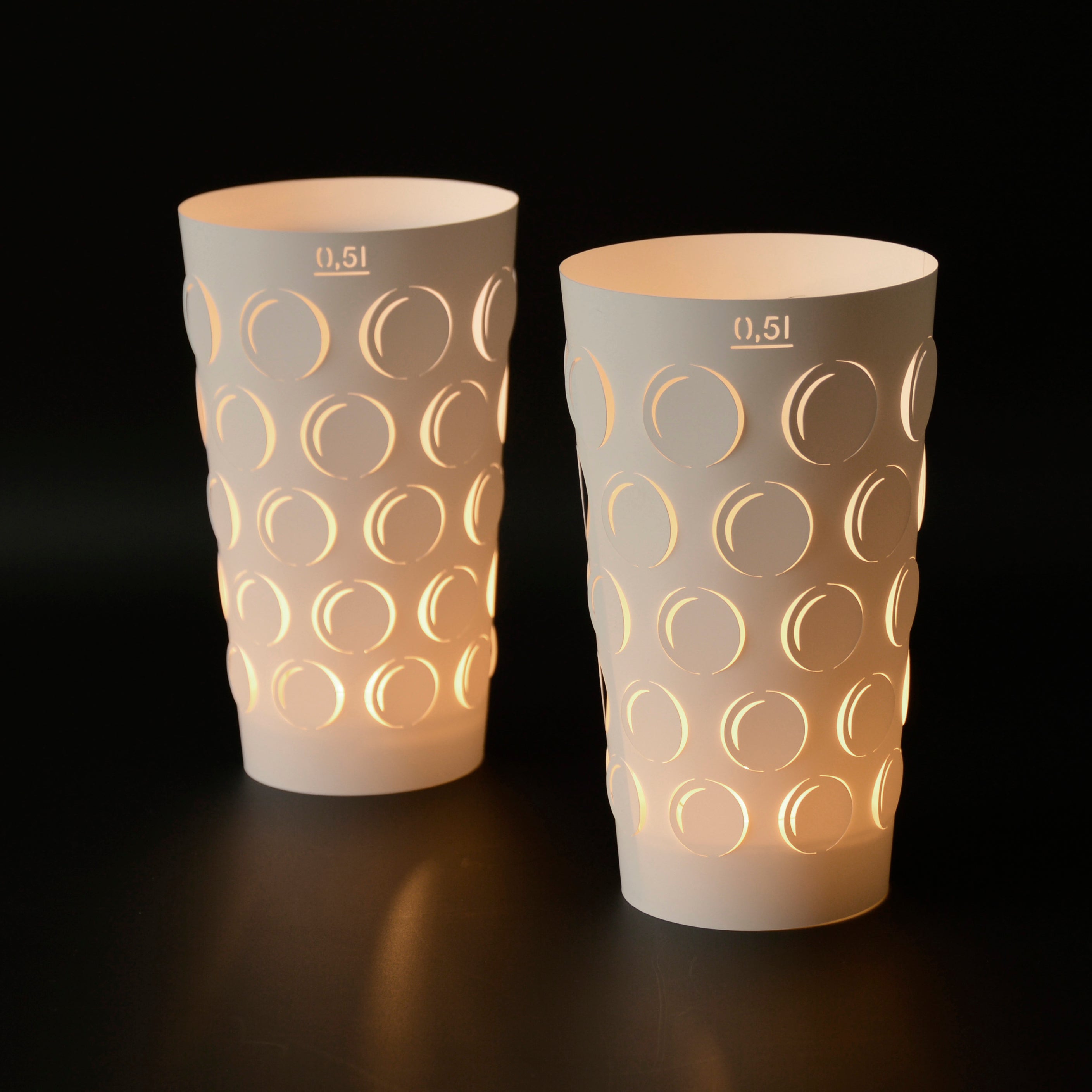 Als Teelichthalter kann ein handelsübliches Teelichtglas oder ein 0,5L oder ein 0,25L Dubbeglas verwendet werden.