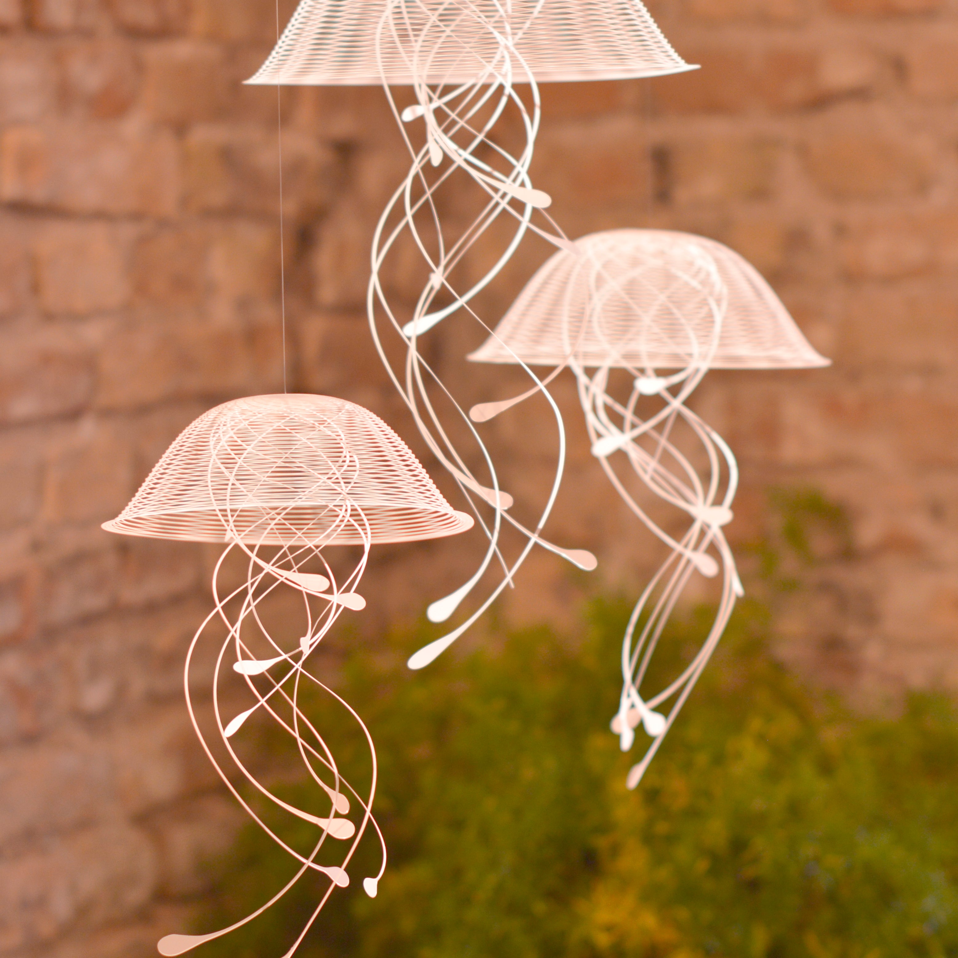 Diese filigranen Hängeskulpturen werden mit viel Sorgfalt in meiner Werkstatt in Deutschland gefertigt. Ihr zartes, organisches Design und die leichte Bewegung erinnern an das anmutige Schweben von Quallen im Wasser. Gefertigt aus hochwertigem Synthetikpapier verbinden sie feine Ästhetik mit langlebiger Formstabilität.