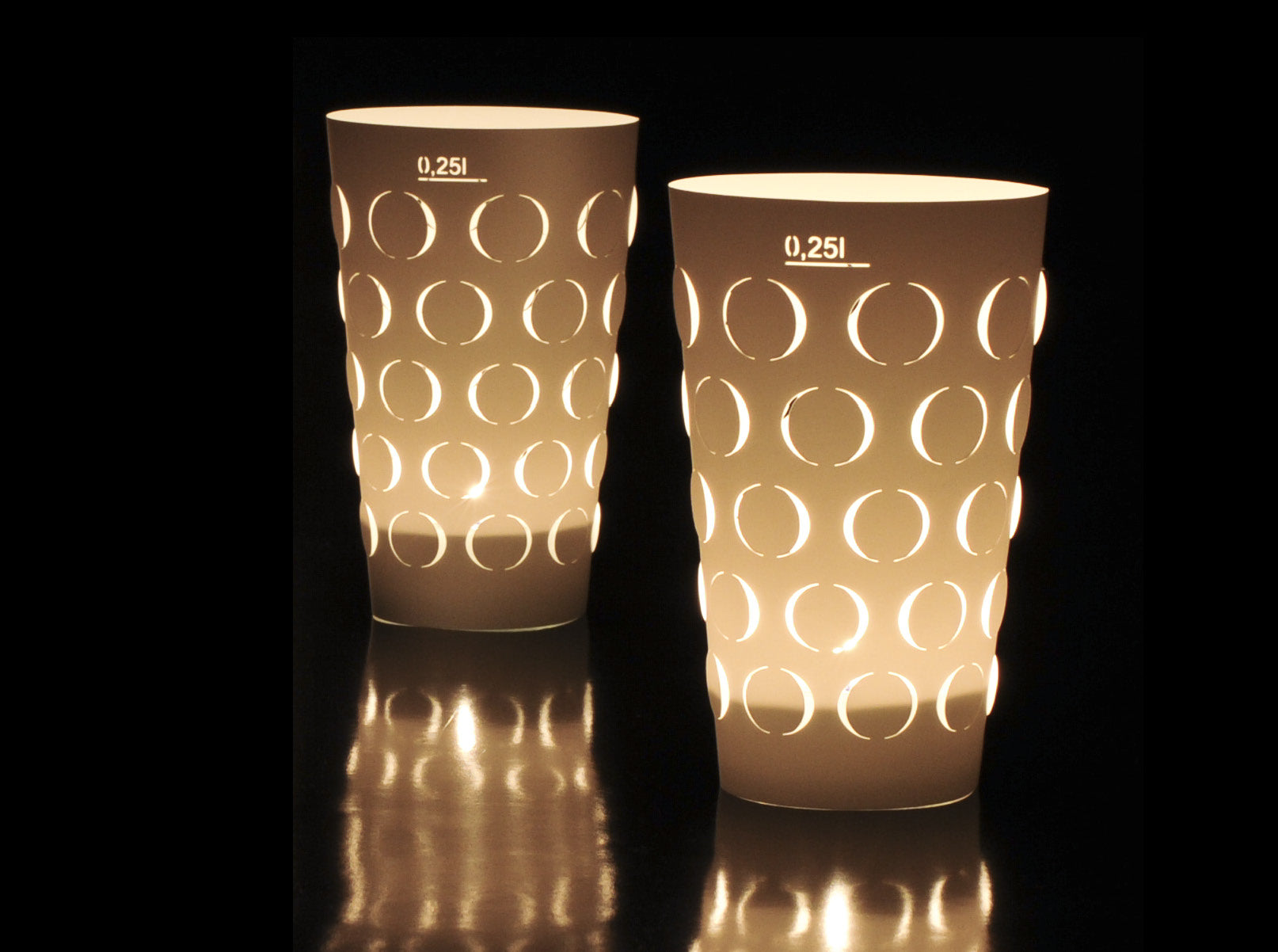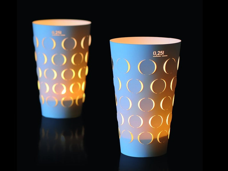 Als Teelichthalter kann ein handelsübliches Teelichtglas oder ein 0,5L oder ein 0,25L Dubbeglas verwendet werden.